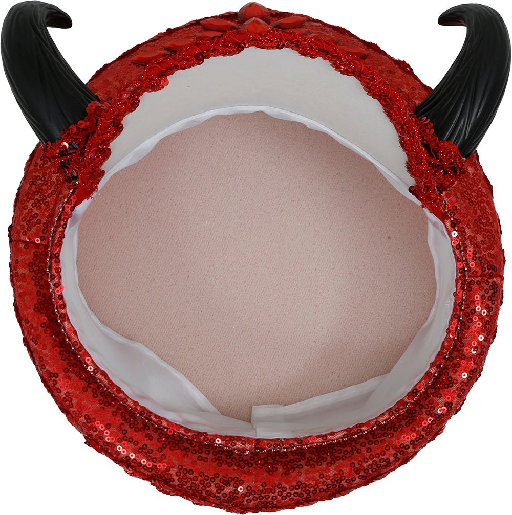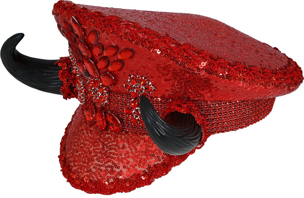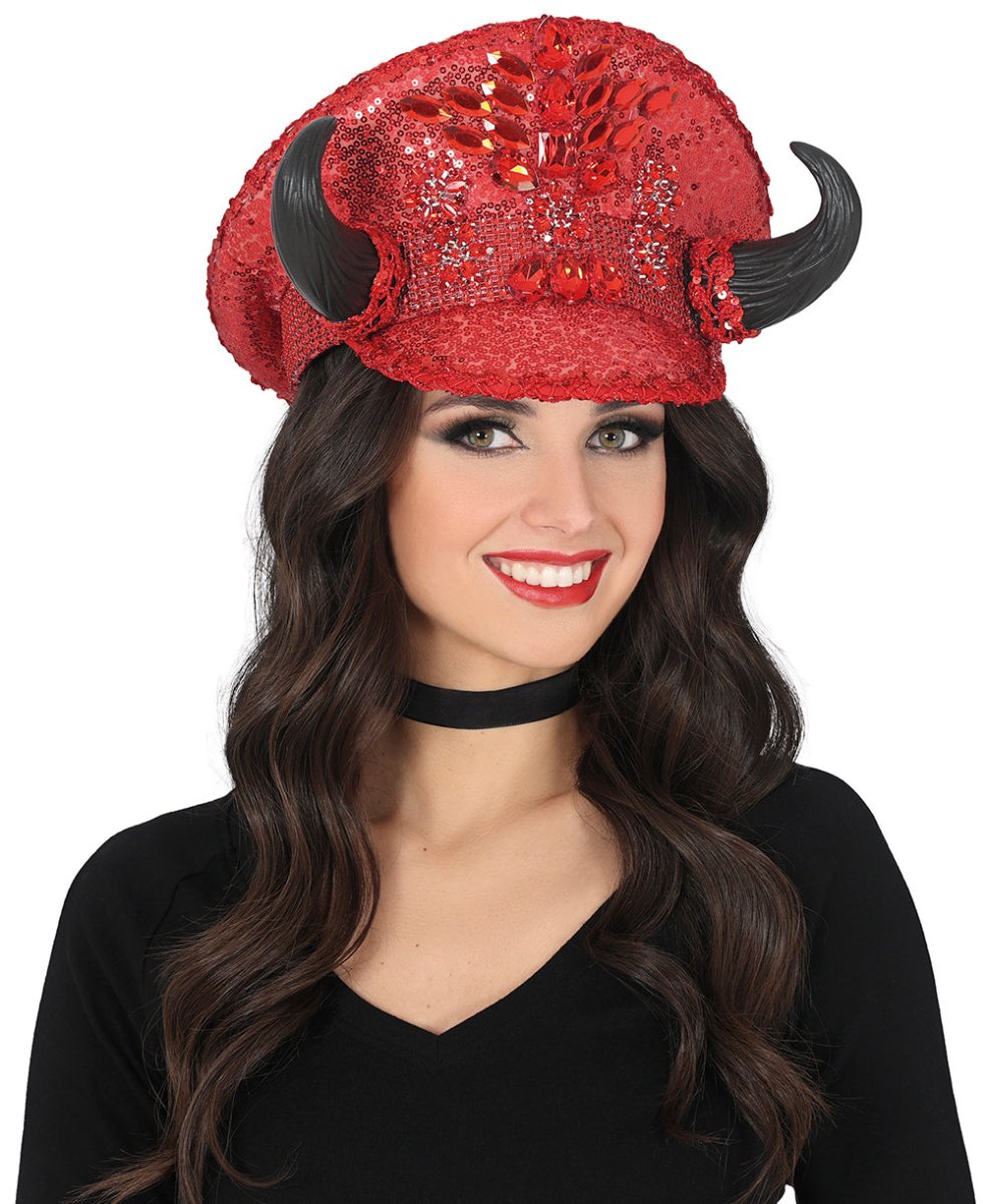Geef je Halloweenoutfit een duivelse twist met deze rode politie pet met horens. De combinatie van rood en zwart zorgt voor een stoere en speelse uitstraling, ideaal voor themafeesten en verkleedpartijen.