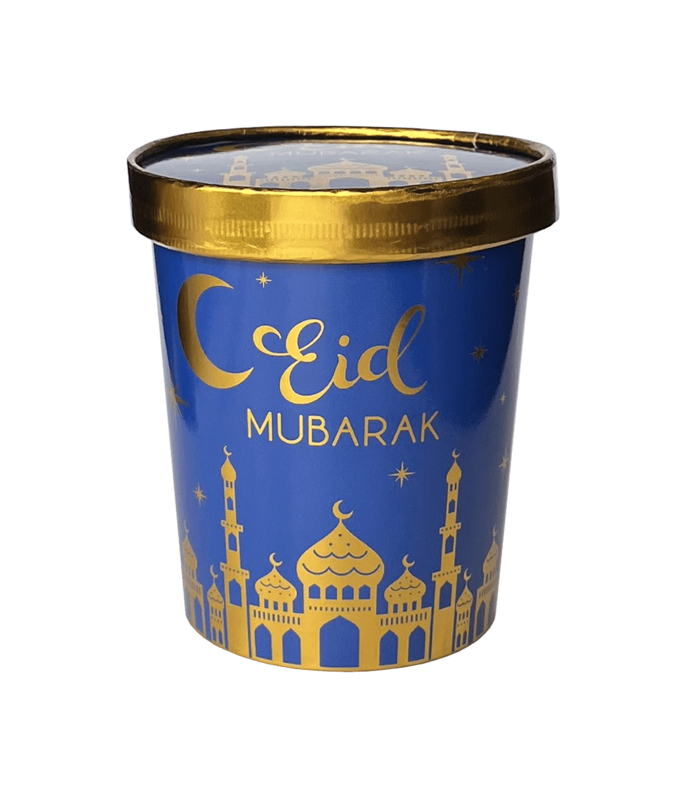 Vier het Suikerfeest stijlvol met dit Eid Mubarak snoepbakje in blauw met gouden accenten. Dankzij het vrolijke en feestelijke design is dit bakje ideaal om snoepgoed of kleine traktaties in te doen tijdens het feest.