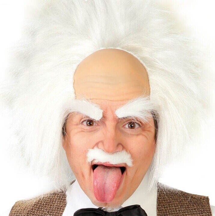 Een geweldige en unieke pruik met wit haar. Een pruik gestyled naar het kapsel van Einstein. Haar met een zeer weelderige haardos. Een geweldige aanvulling op je MAD SCIENTIST-kostuum.