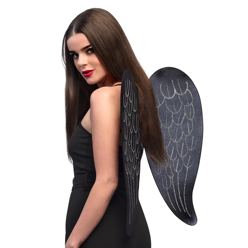 Speelse zwarte engelenvleugels om in een handomdraai een leuke outfit met een duister tintje voor Halloween samen te stellen. De Dark Angel vleugels (53 x 54 cm) hebben kunnen makkelijk gedragen worden door middel van de elastieken banden. Dé perfecte accessoire om als gevallen engel naar een Halloweenfeest te gaan.