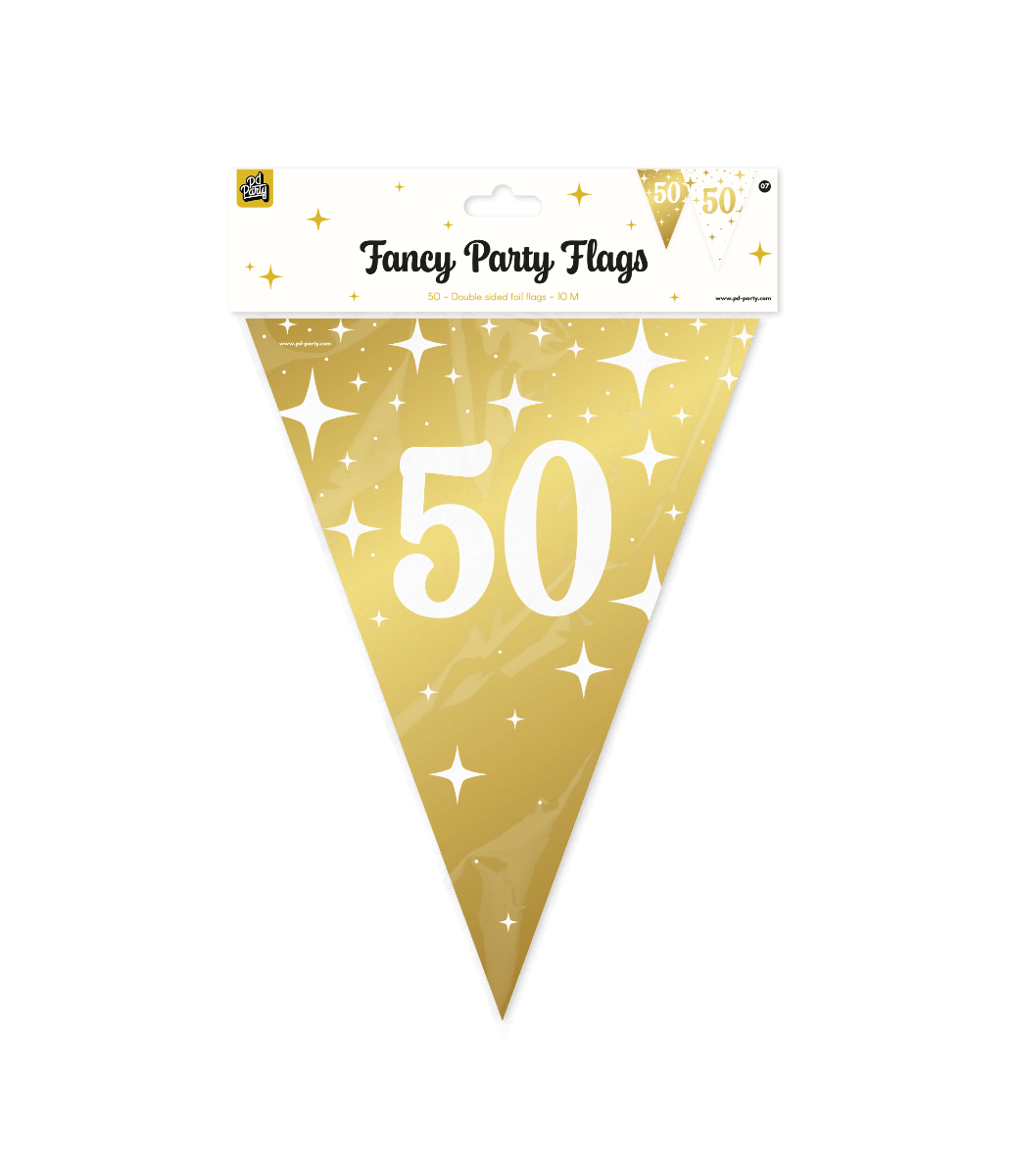 De Fancy Party Flags foil - 50 laat zich uitstekend combineren met onze bijpassende ballonnen én met andere feestartikelen uit ons ruime assortiment, zodat je moeiteloos een feestelijke en stijlvolle sfeer creëert.