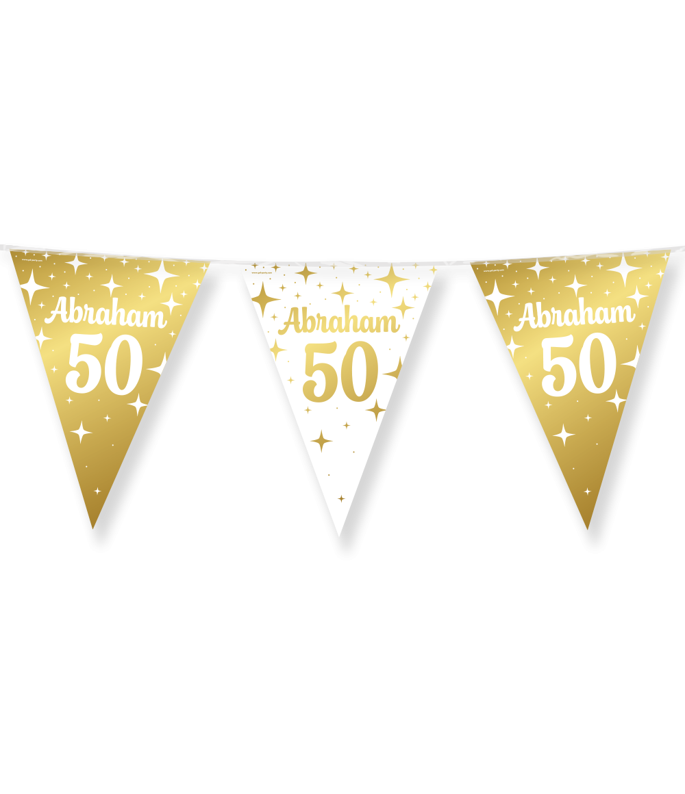 De Fancy Party Flags foil - Abraham 50 laat zich uitstekend combineren met onze bijpassende ballonnen én met andere feestartikelen uit ons ruime assortiment, zodat je moeiteloos een feestelijke en stijlvolle sfeer creëert.