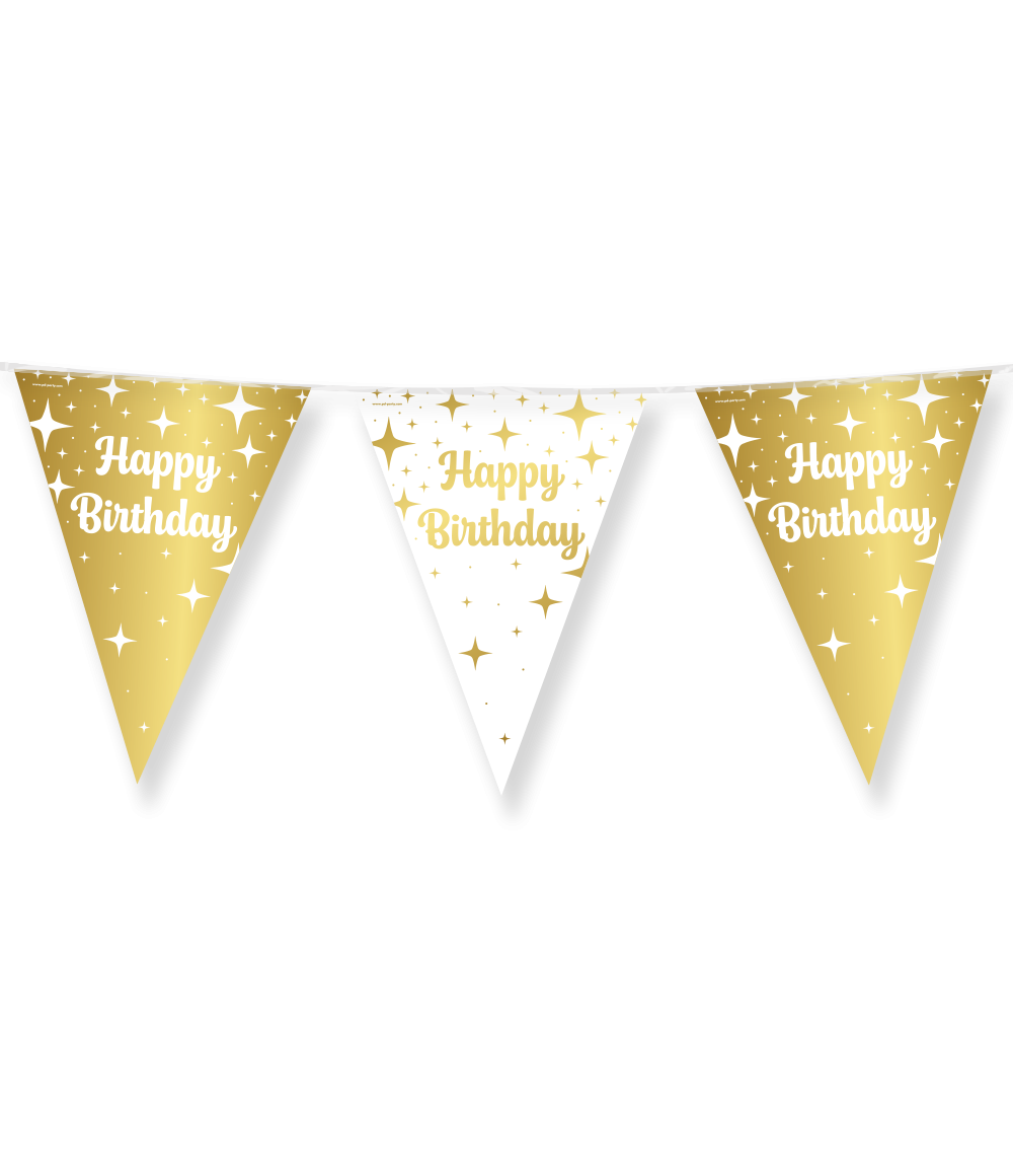 De Fancy Party Flags foil - Happy birthday laat zich uitstekend combineren met onze bijpassende ballonnen én met andere feestartikelen uit ons ruime assortiment, zodat je moeiteloos een feestelijke en stijlvolle sfeer creëert.