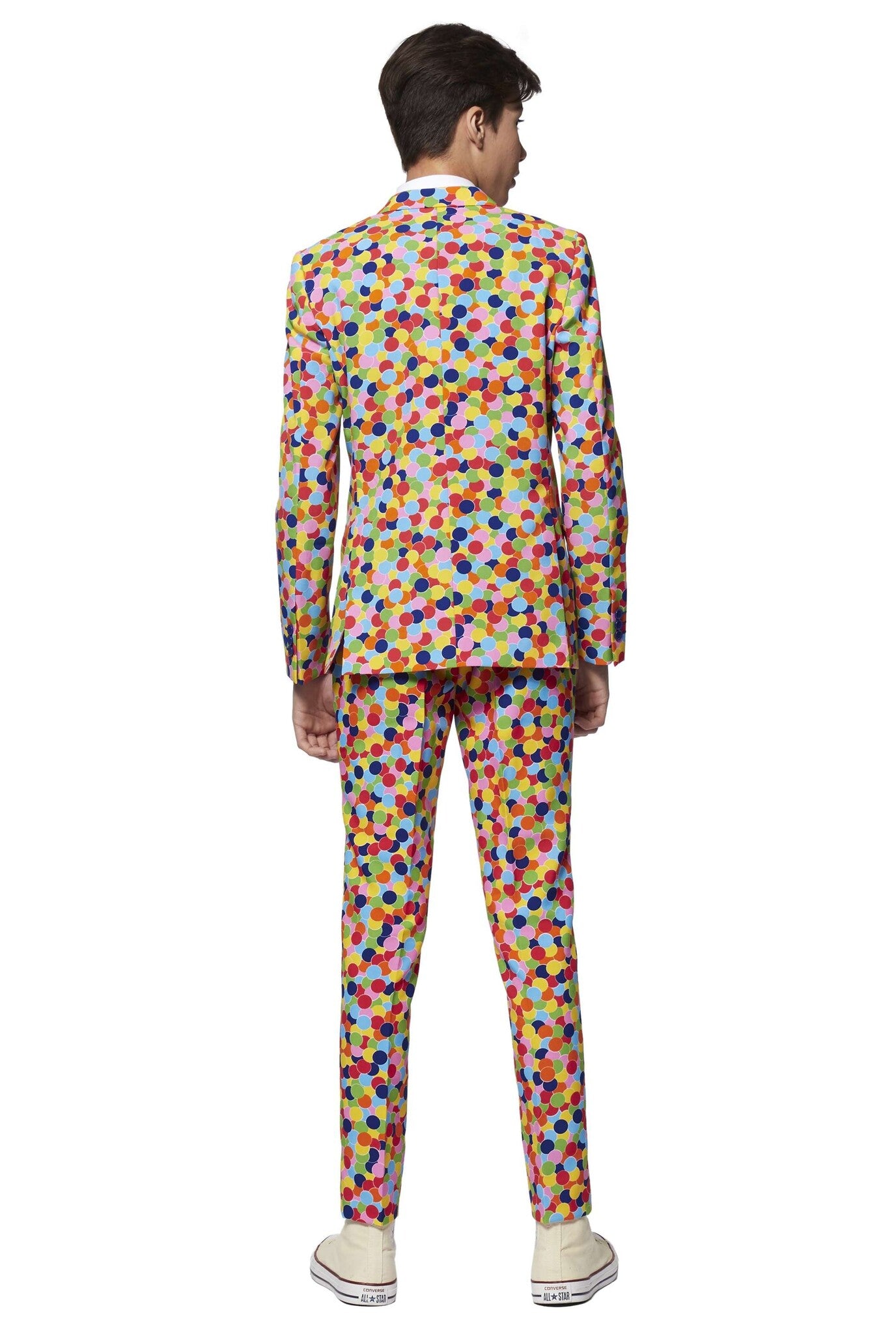 Confetti is zonder twijfel een van onze favoriete papiersoorten. Want waar confetti is, is feest. Dit pak is dan ook alleen bestemd voor de echte feestbeesten onder ons. We durven te wedden dat jij dat bent, dus trek gauw dit pak aan en vier feest alsof het je laatste is! Boom! confetticanon.