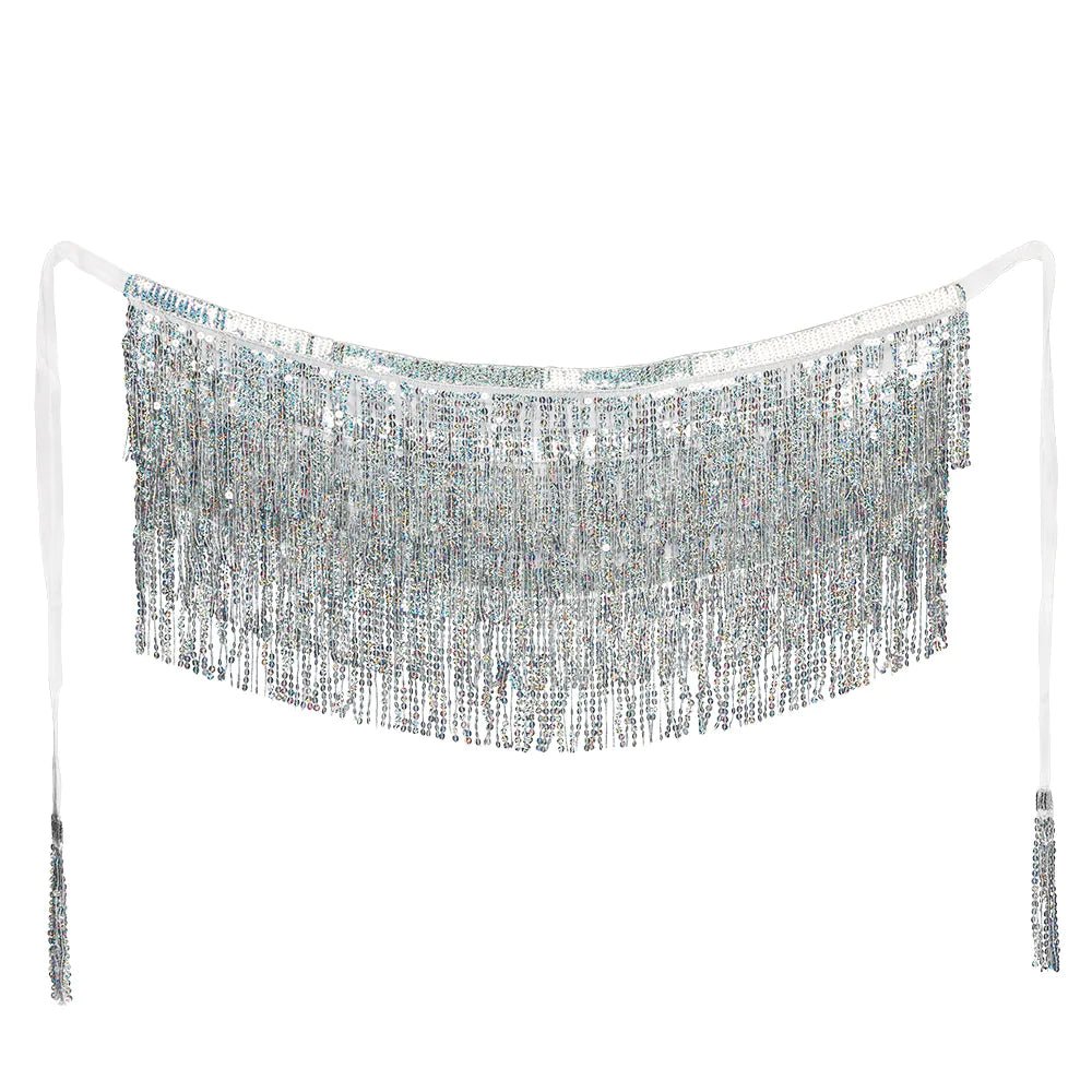 Deze zilveren riem met franjes straalt pure glamour uit. In een handomdraai creëer je een opvallende festival-look met een onmiskenbare wow-factor. Maar deze riem is ook te gek voor een 1001 nacht themafeest of wanneer je carnaval gaat als een ware buikdanseres.