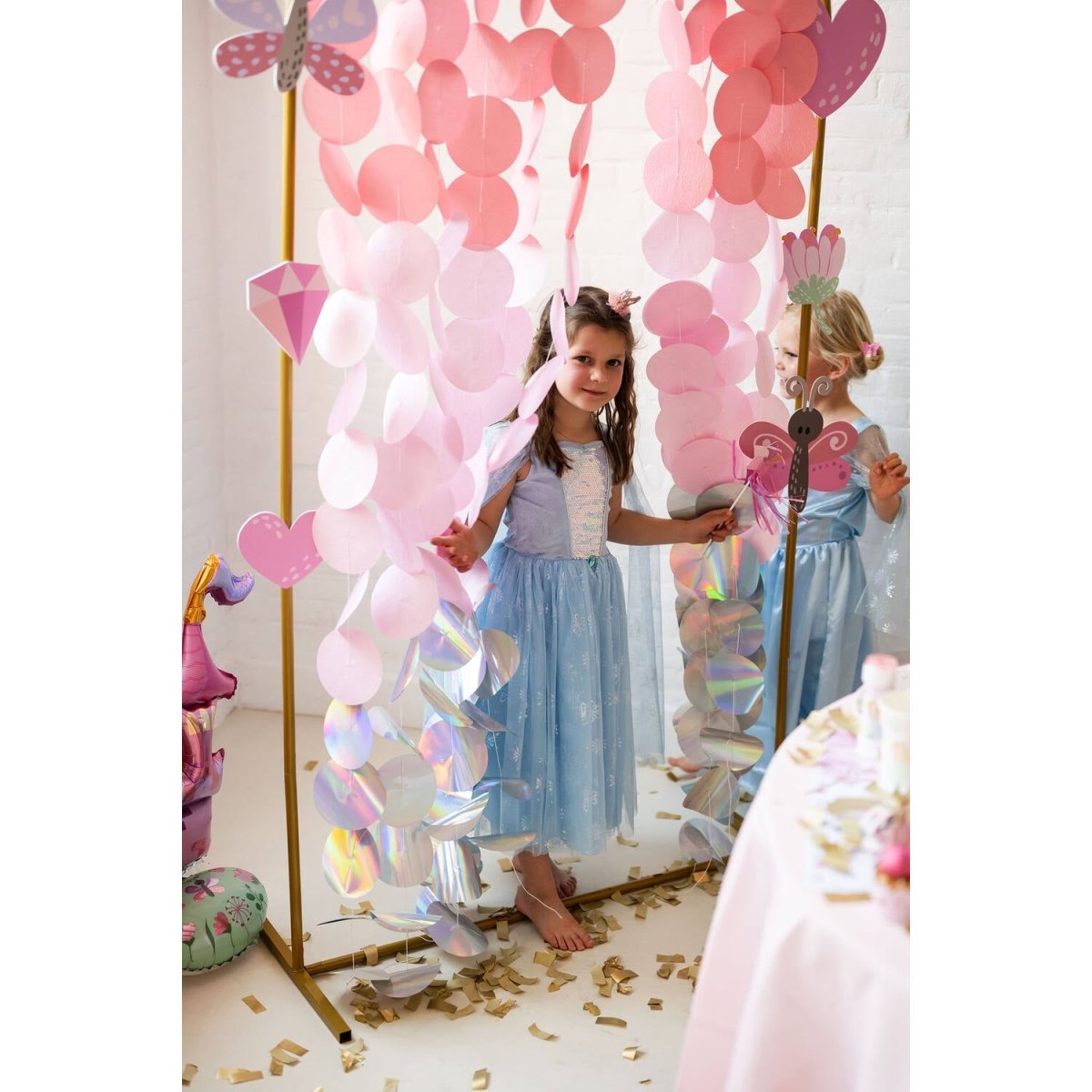 Deze fonkelende lichtblauwe prinsessenjurk laat ieder kind stralen als een echte sneeuwvlokjesprinses. Beschikbaar in twee maten: 98-110 cm (3-5 jaar) en 116-128 cm (6-8 jaar).