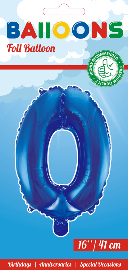 Folie Ballon Cijfer 0 Blauw 41cm met Rietje
