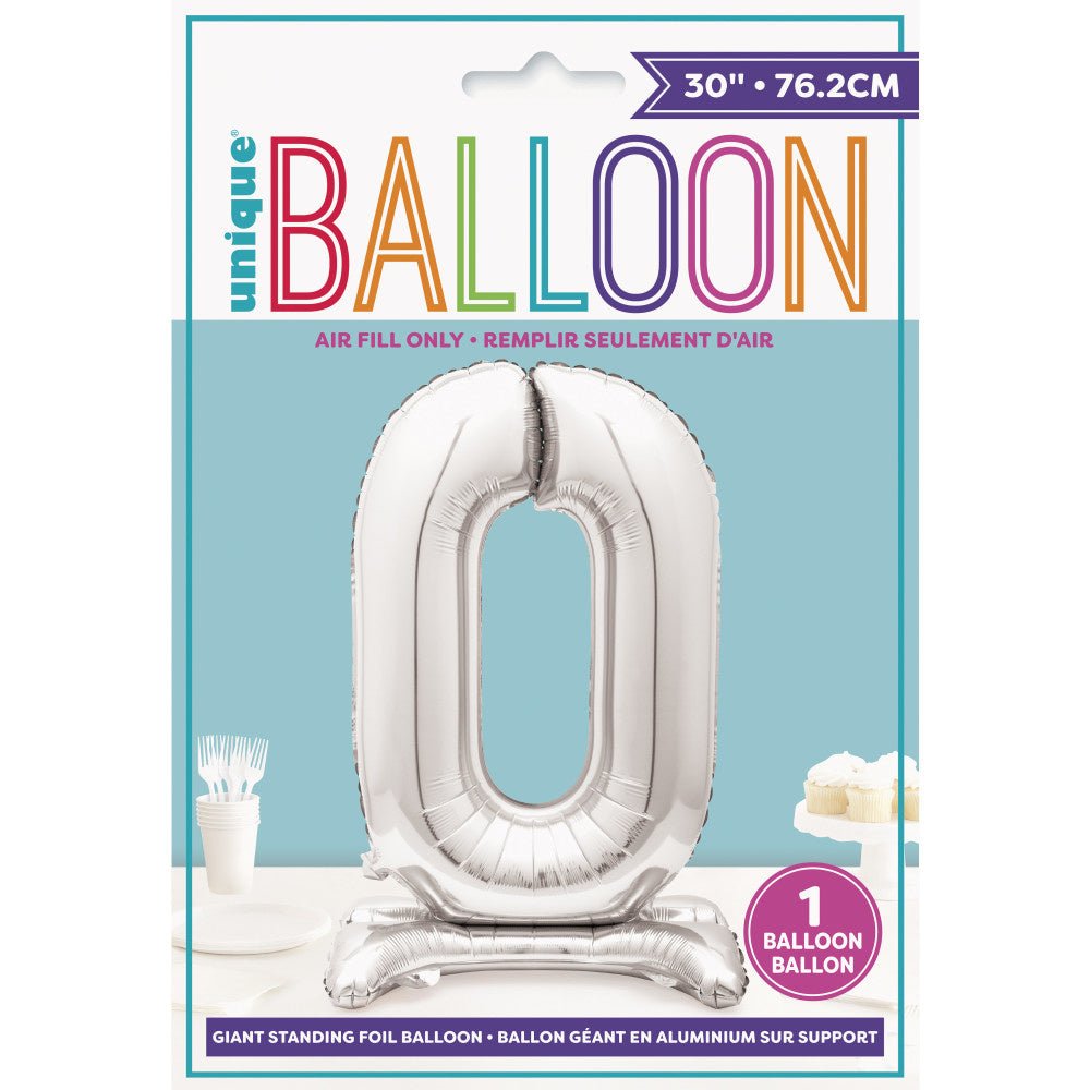 Folie Ballon Cijfer 0 Zilver Standaard 76cm