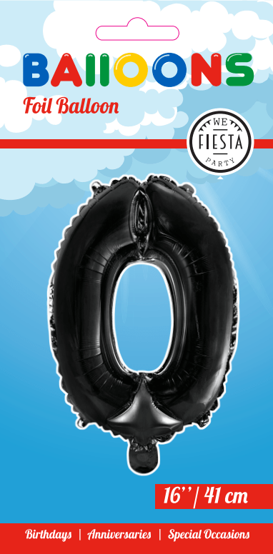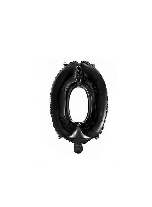 Folie Ballon Cijfer 0 Zwart 41cm met Rietje