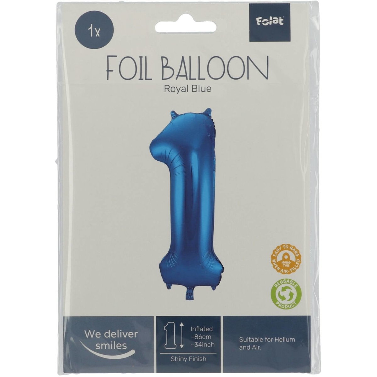 Folie Ballon Cijfer 1 Blauw Metallic XL 86cm leeg