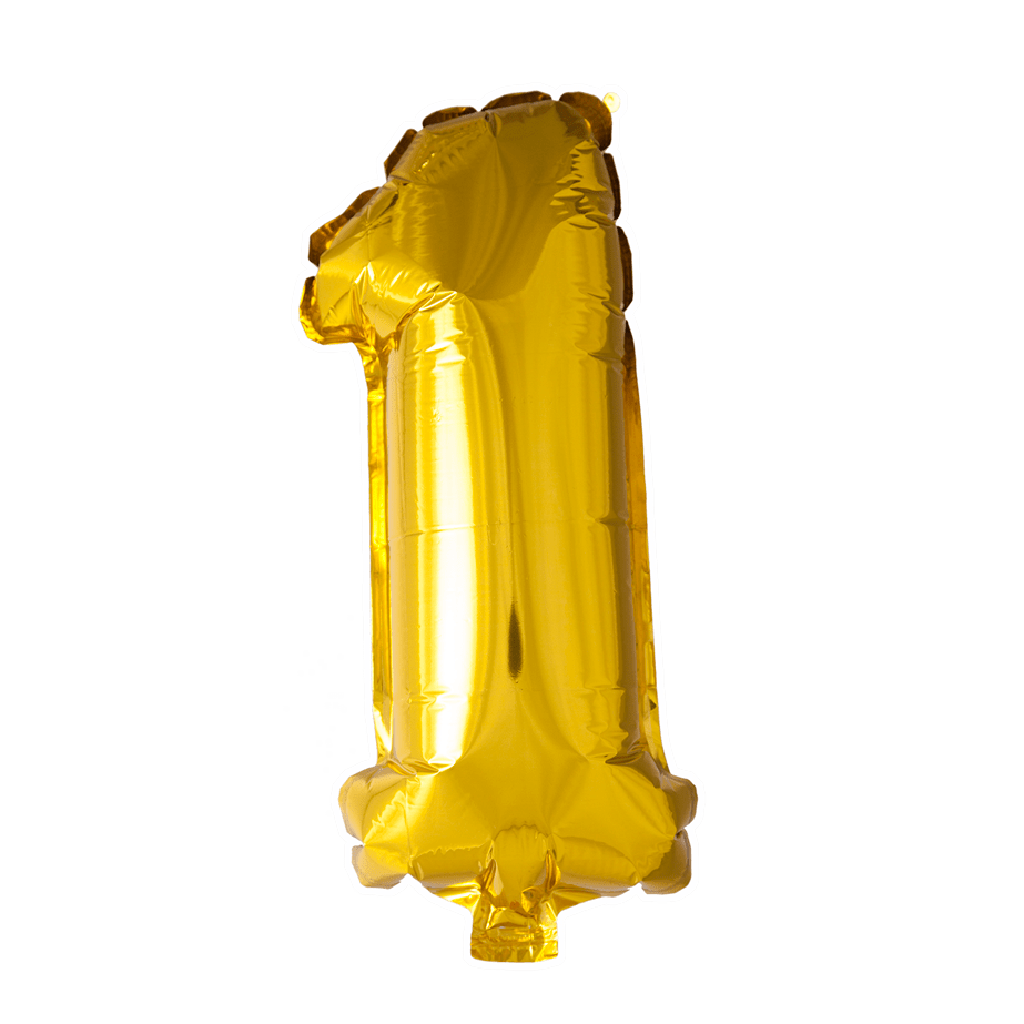 Folie Ballon Cijfer 1 Goud 41cm met Rietje