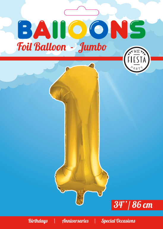 Folie Ballon Cijfer 1 Goud XL 86cm leeg