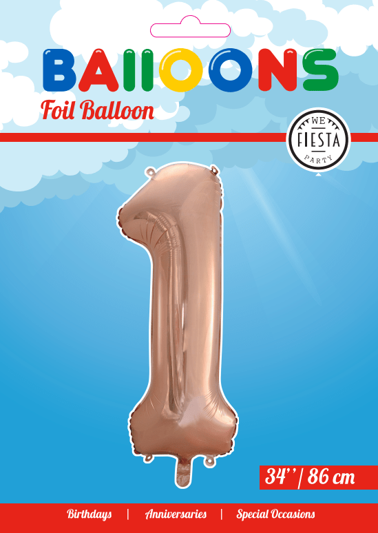 Folie Ballon Cijfer 1 Rose Goud XL 86cm leeg