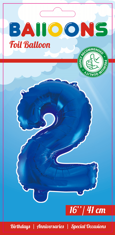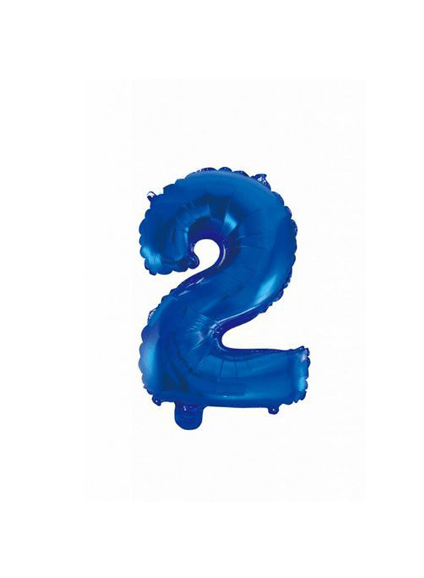 Folie Ballon Cijfer 2 Blauw 41cm met Rietje