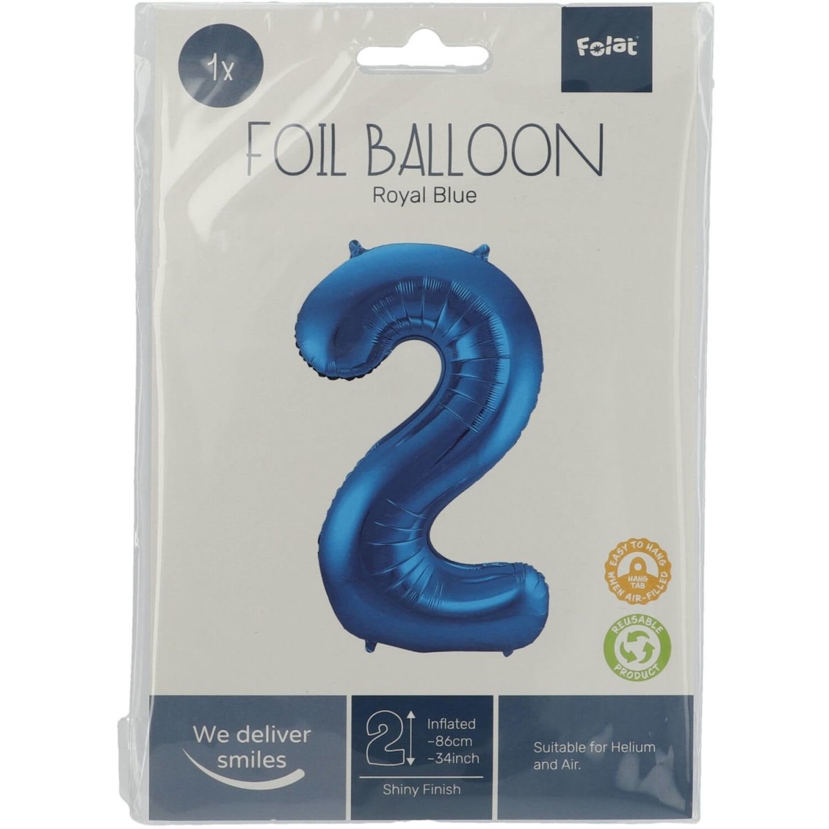 Folie Ballon Cijfer 2 Blauw Metallic XL 86cm leeg