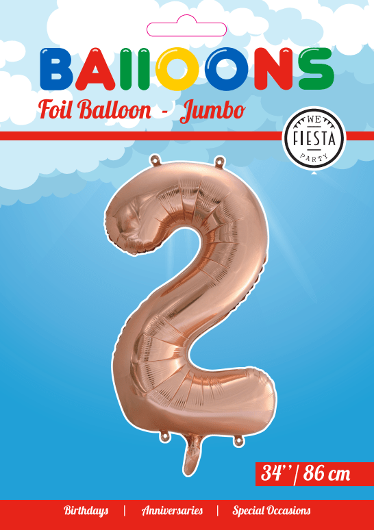 Folie Ballon Cijfer 2 Rose Goud XL 86cm leeg