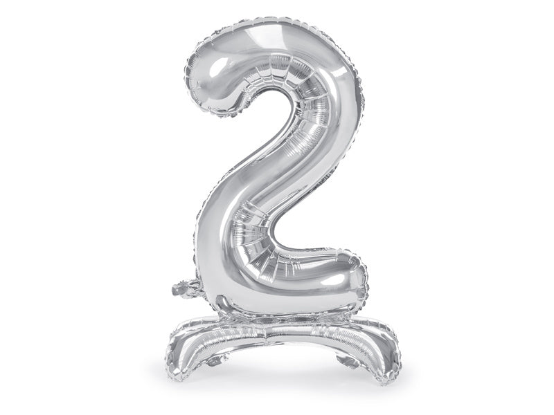 Folie Ballon Cijfer 2 Zilver Standaard Leeg 70cm