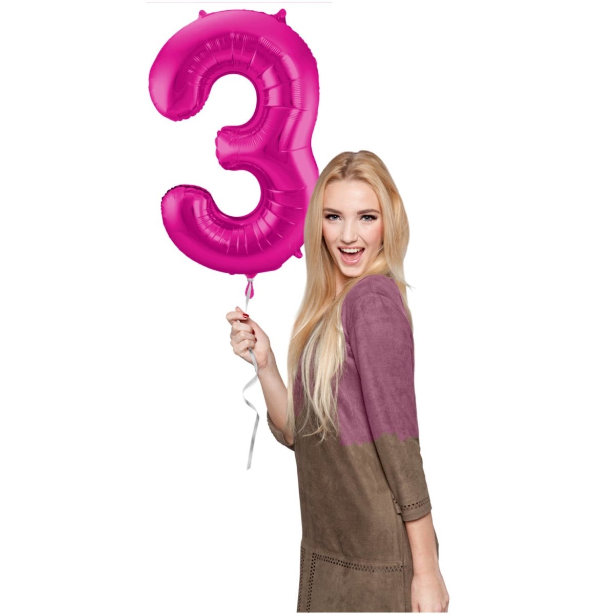 Folie Ballon Cijfer 3 Fuchsia Metallic XL 86cm leeg