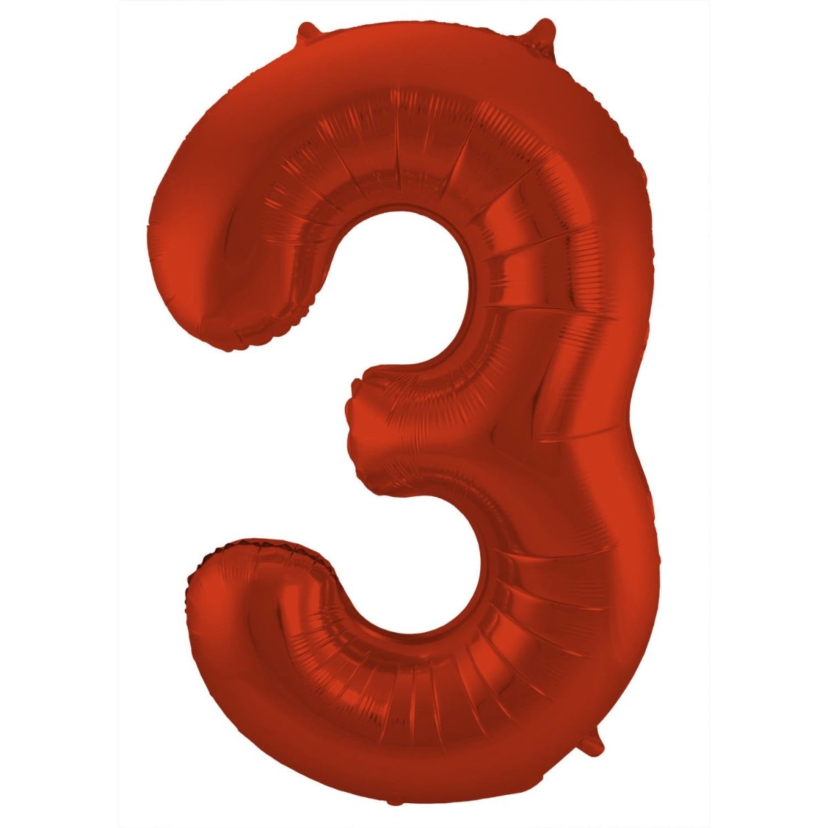 Folie Ballon Cijfer 3 Mat Rood XL 86cm leeg
