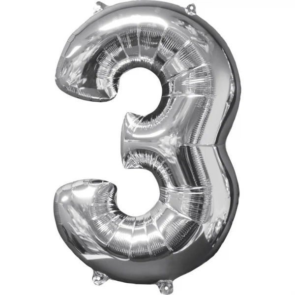 Folie Ballon Cijfer 3 Zilver 86cm leeg