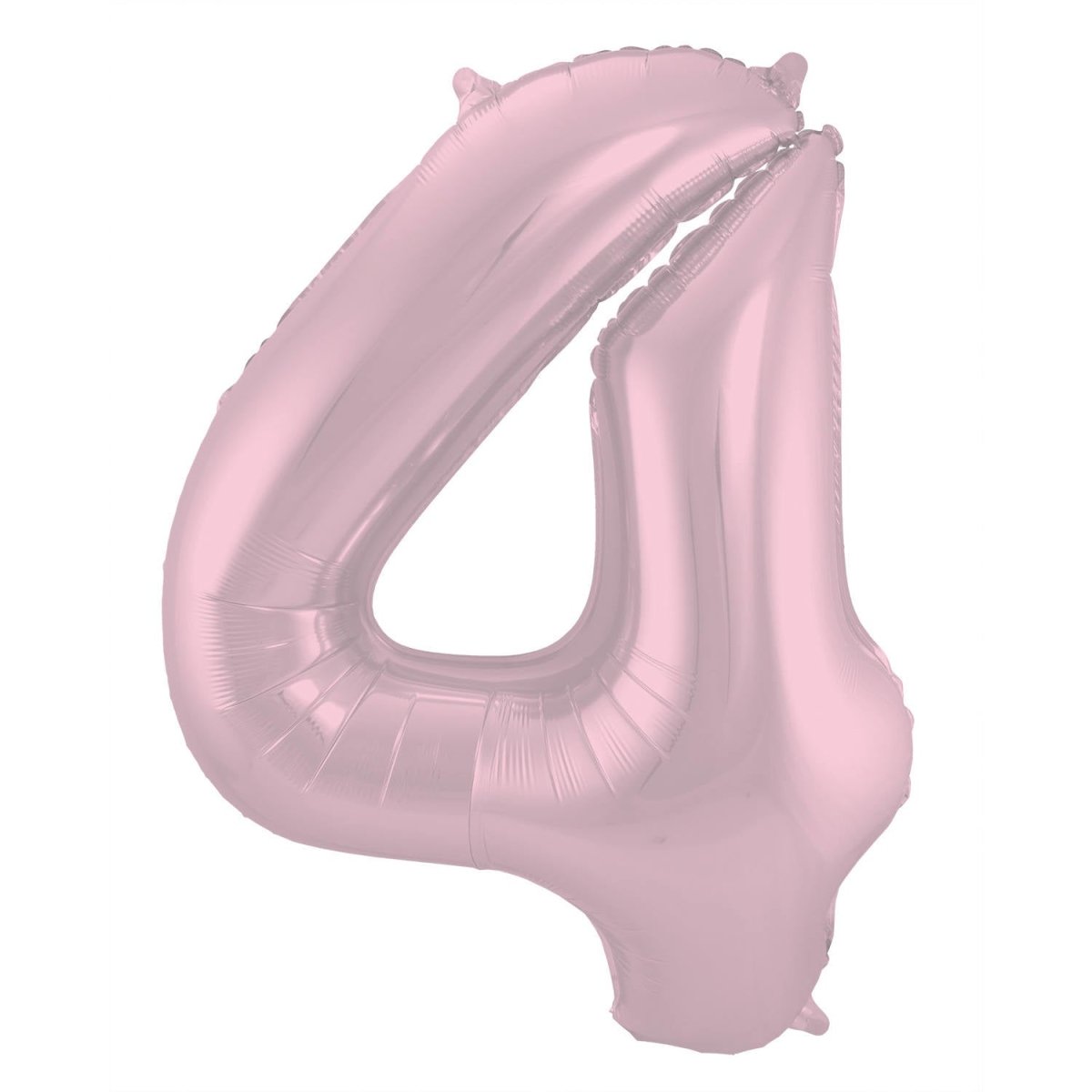 Folie Ballon Cijfer 4 Pastel Roze XL 86cm leeg