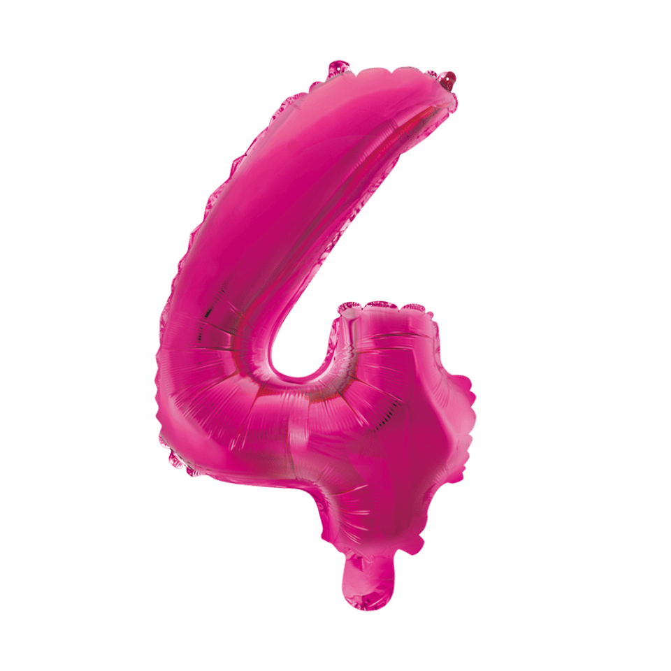 Folie Ballon Cijfer 4 Roze 41cm met Rietje