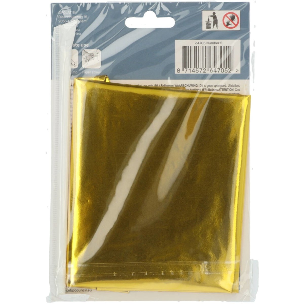 Folie Ballon Cijfer 5 Goud met standaard 72cm