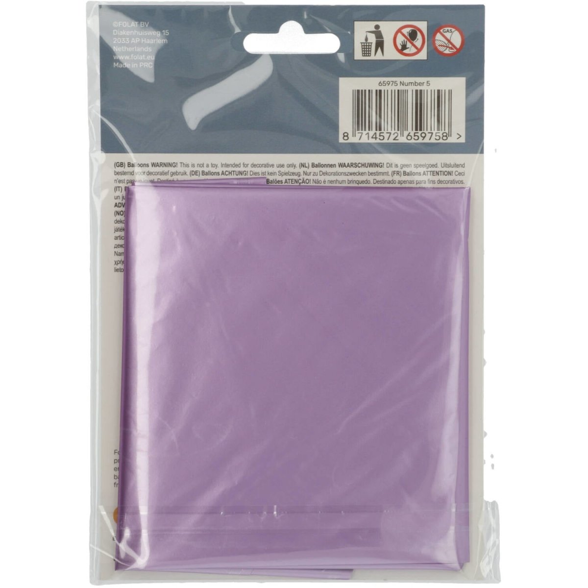Folie Ballon Cijfer 5 Mat Paars XL 86cm leeg