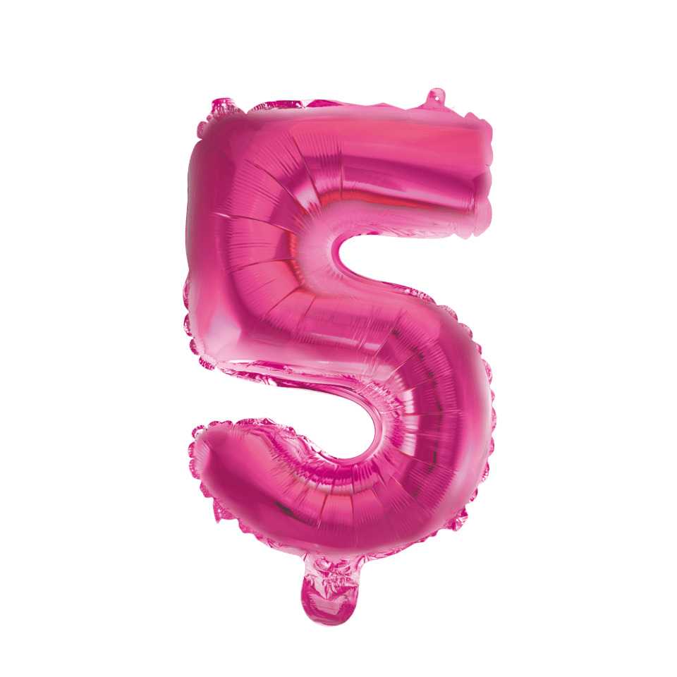 Folie Ballon Cijfer 5 Roze 41cm met Rietje
