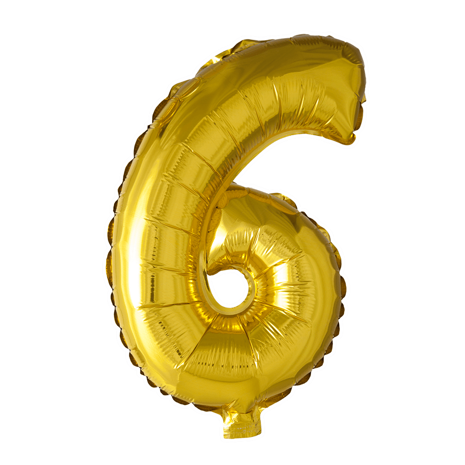 Folie Ballon Cijfer 6 Goud 41cm met Rietje