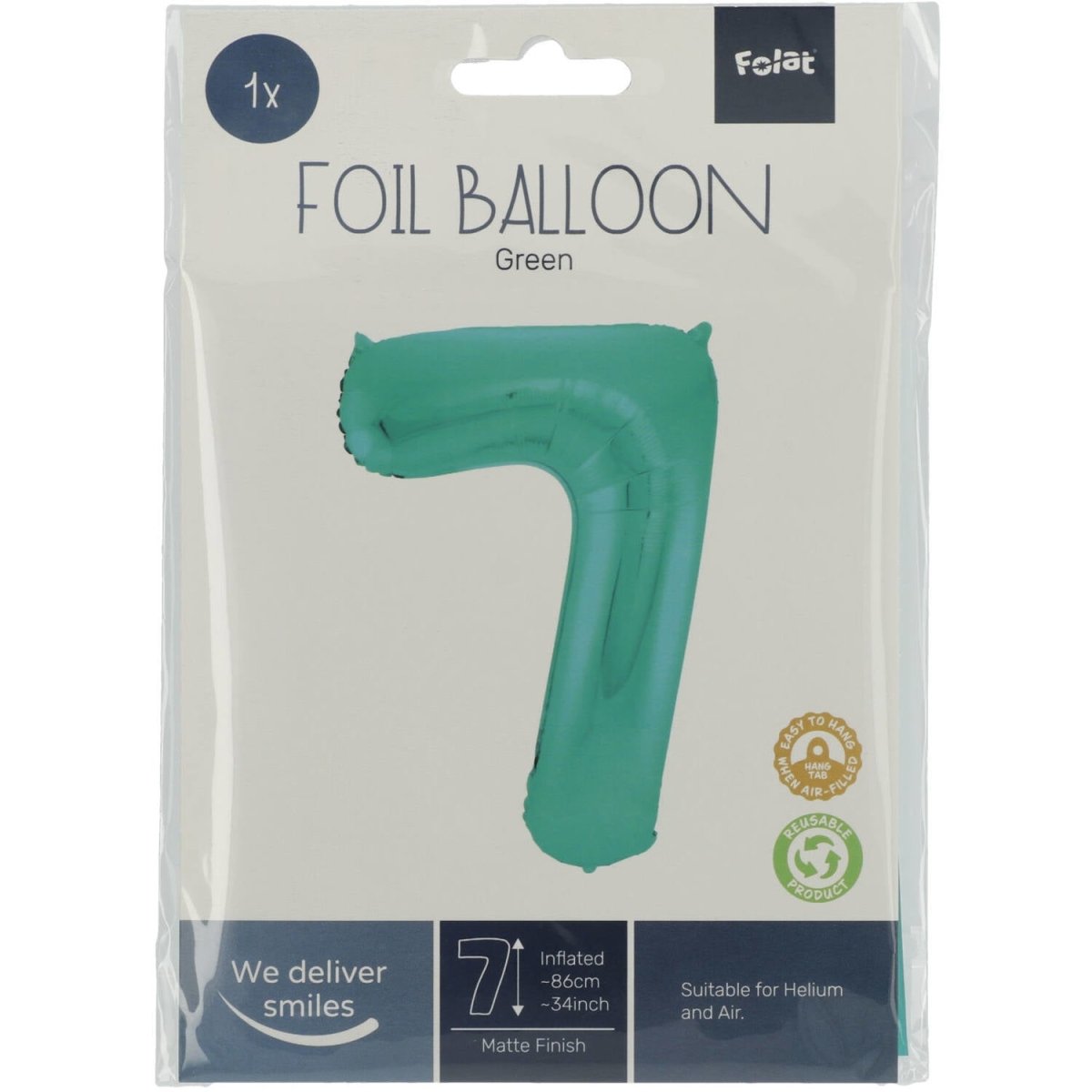 Mooie grote folieballon van het cijfer 7 in een metallic mat groene kleur. Inhoud: 1 folieballon van 86cm. Kleur: Groen. De ballon komt met handige ophang tabs, zodat hij makkelijk opgehangen kan worden. Bijvoorbeeld te gebruiken tijdens de volgende feestgelegenheid/feestgelegenheden: Verjaardag, Kinderfeestje en Jubileum. Deze folieballon is 34 inch/86 cm. Het artikel is gemaakt van folie.