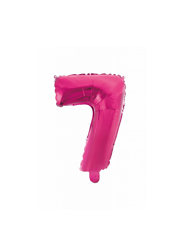 Folie Ballon Cijfer 7 Roze 41cm met Rietje