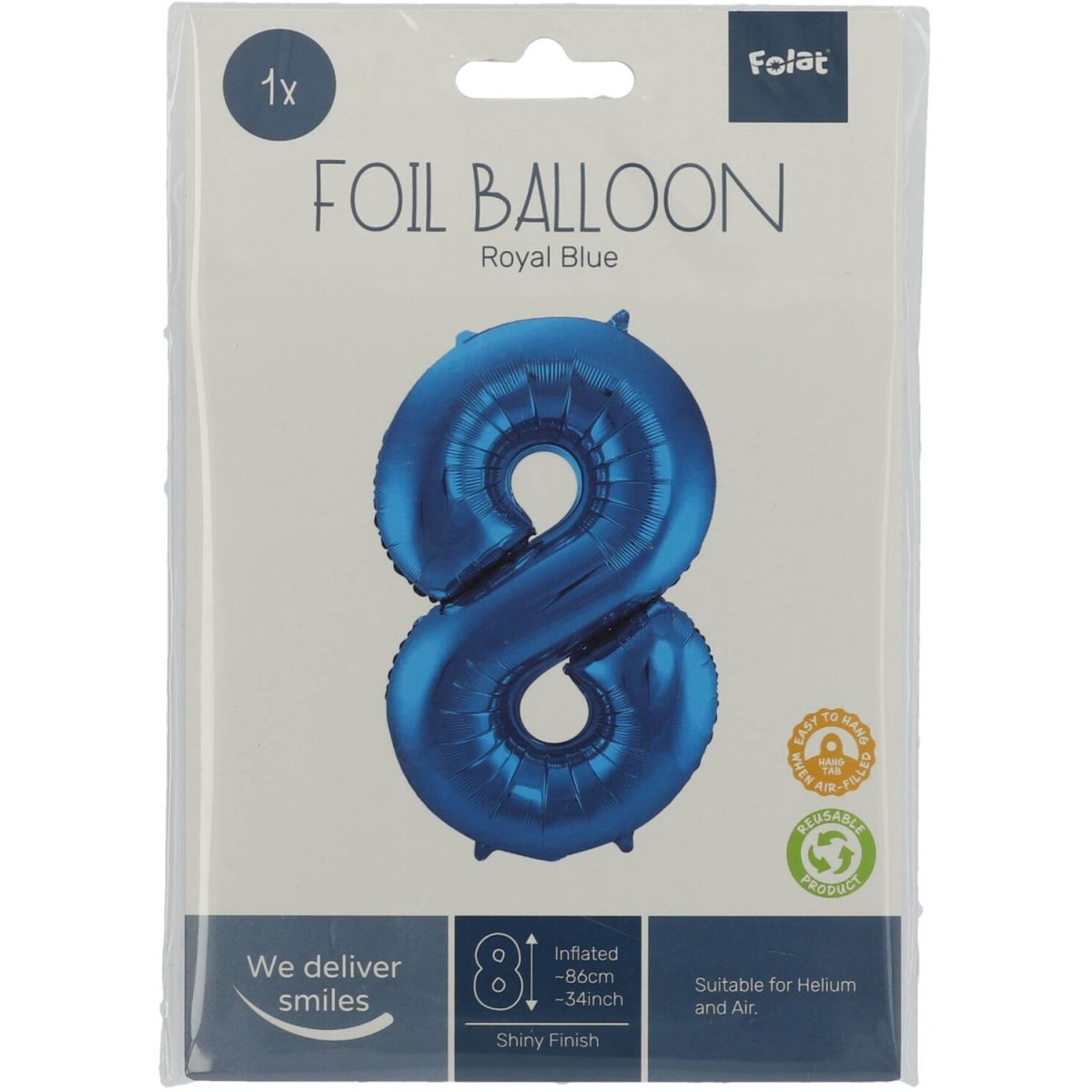 Folie Ballon Cijfer 8 Blauw Metallic XL 86cm leeg
