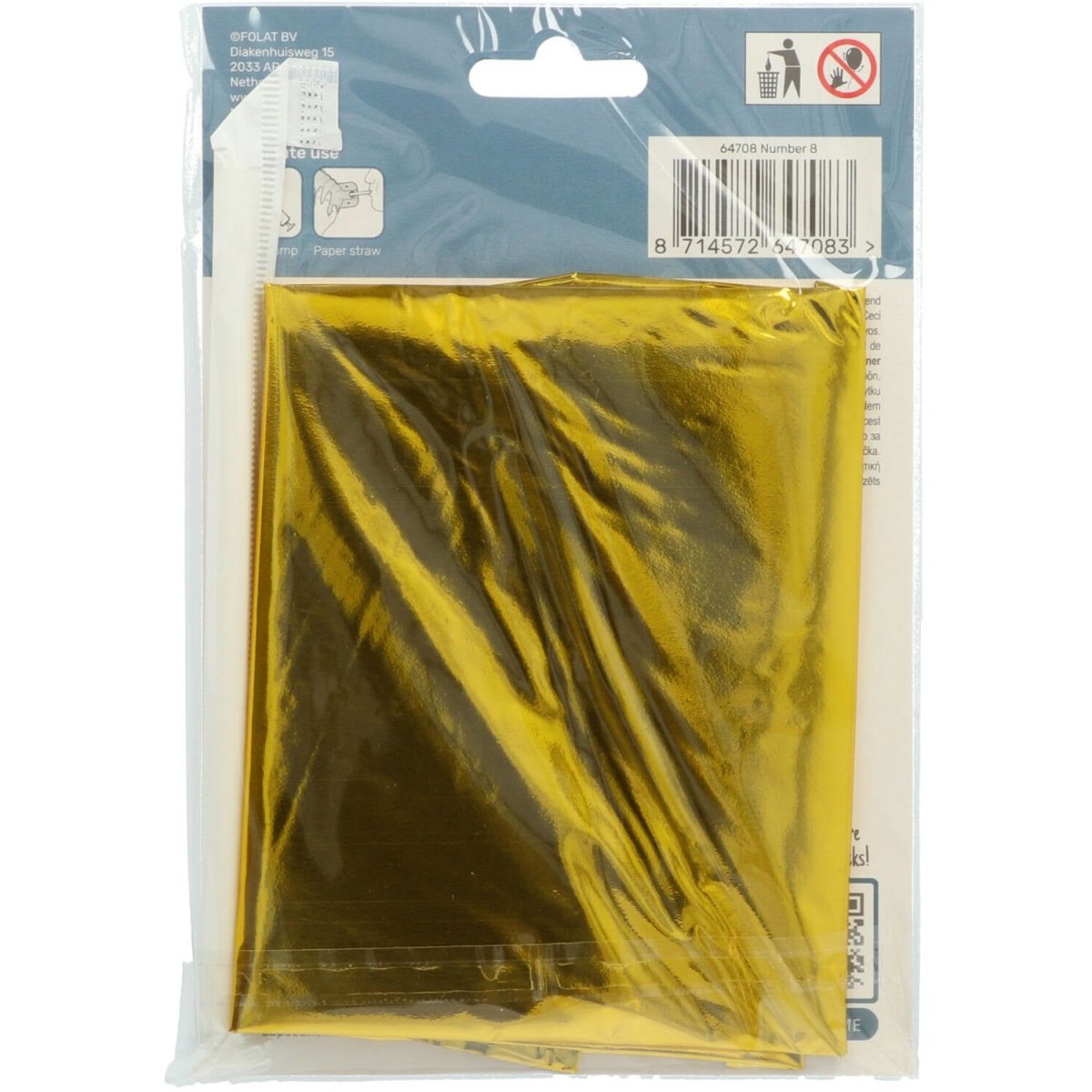 Folie Ballon Cijfer 8 Goud met standaard 72cm