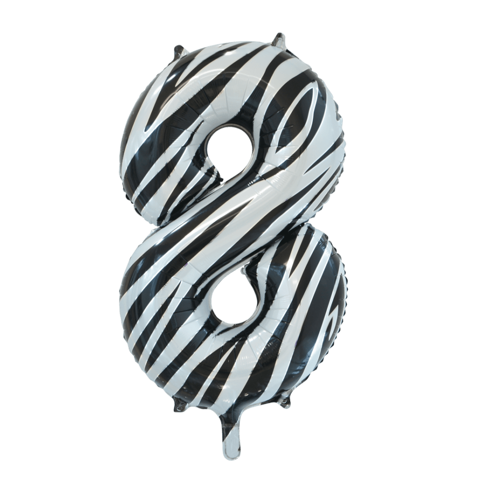 Folie Ballon Cijfer 8 Zebra XL 86cm leeg