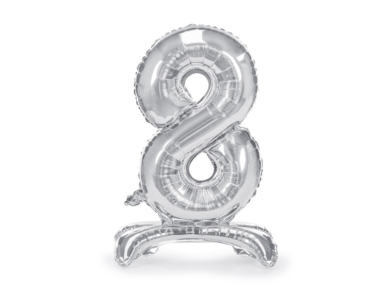 Folie Ballon Cijfer 8 Zilver Standaard Leeg 70cm
