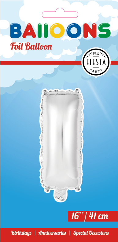 Folie Ballon Letter I Zilver 41cm met Rietje