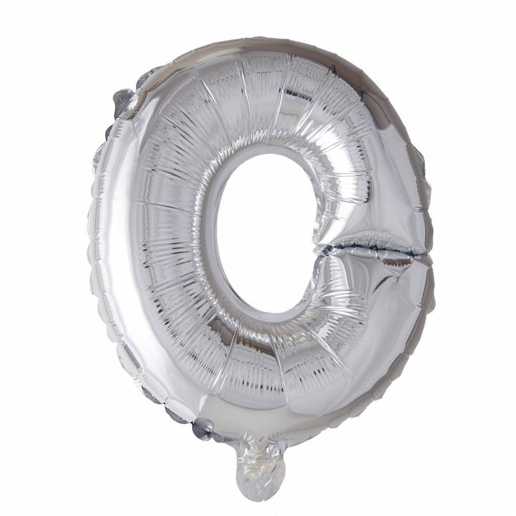 Folie Ballon Letter O Zilver 41cm met Rietje
