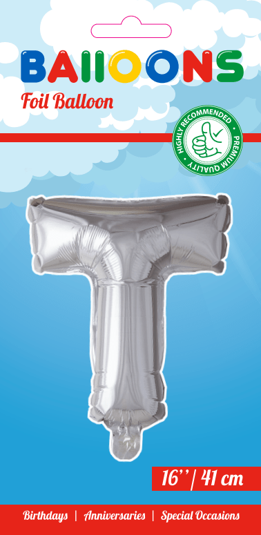 Folie Ballon Letter T Zilver 41cm met Rietje