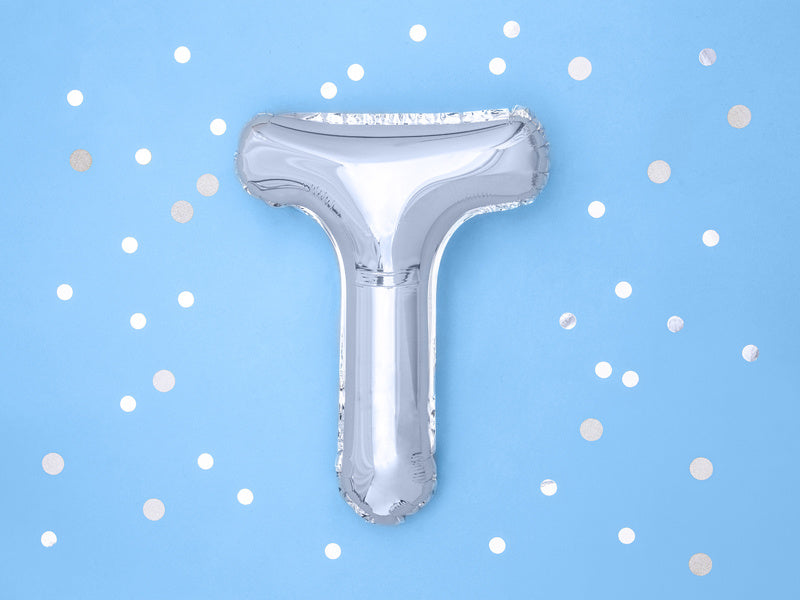 Folie Ballon Letter T Zilver Leeg 35cm