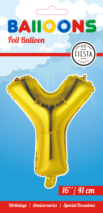Folie Ballon Letter Y Goud 41cm met Rietje