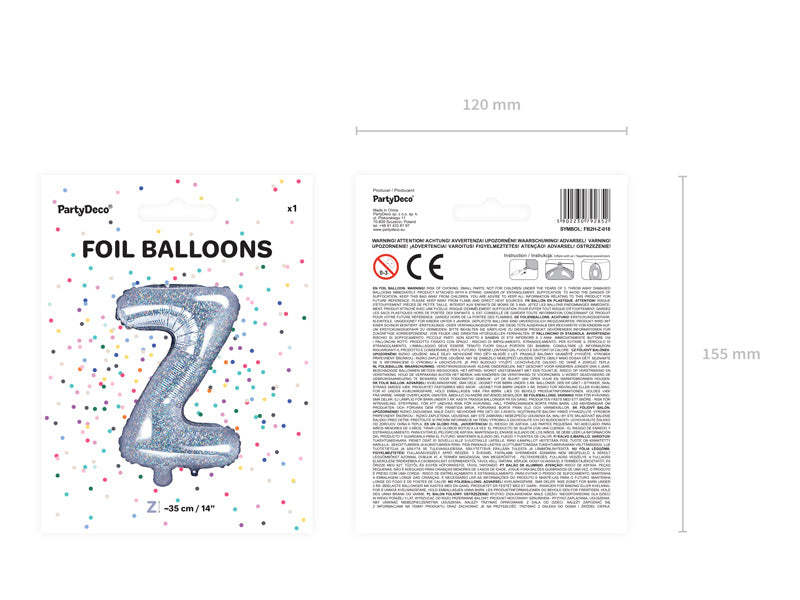 Folie Ballon Letter Z Holografisch Leeg 35cm