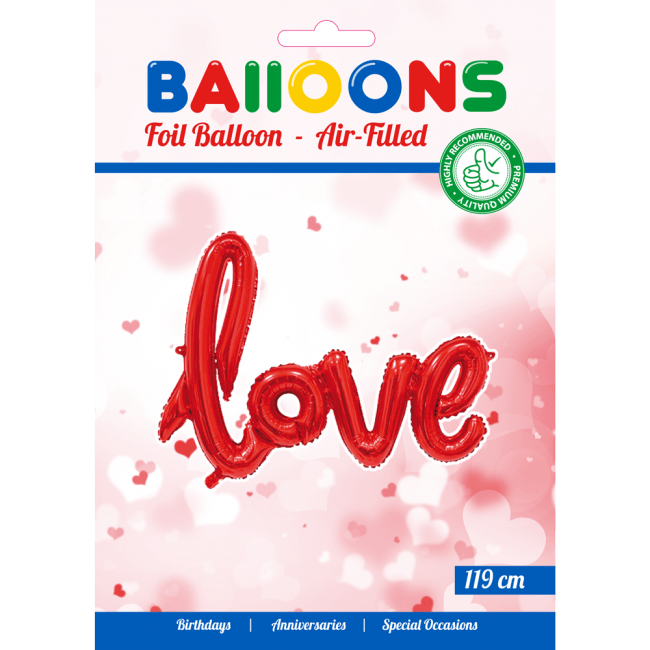 Verpakkingsinhoud: Folie Ballon Love Rood 1,19m leeg