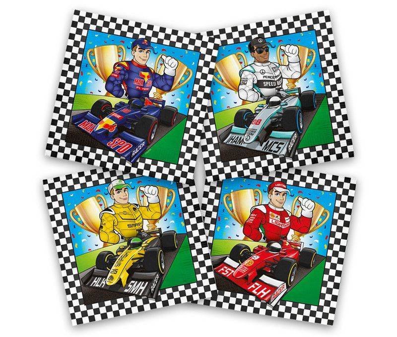 Formule 1 Servetten 33x33cm - 20 stuks. Inhoud: 20 servetten. Kleur: Meerkleurig. Productthema: Formula. Bijvoorbeeld te gebruiken tijdens de volgende feestgelegenheid/feestgelegenheden: kinderfeestje. Een servet is 33x33cm. Het artikel is gemaakt van papier.