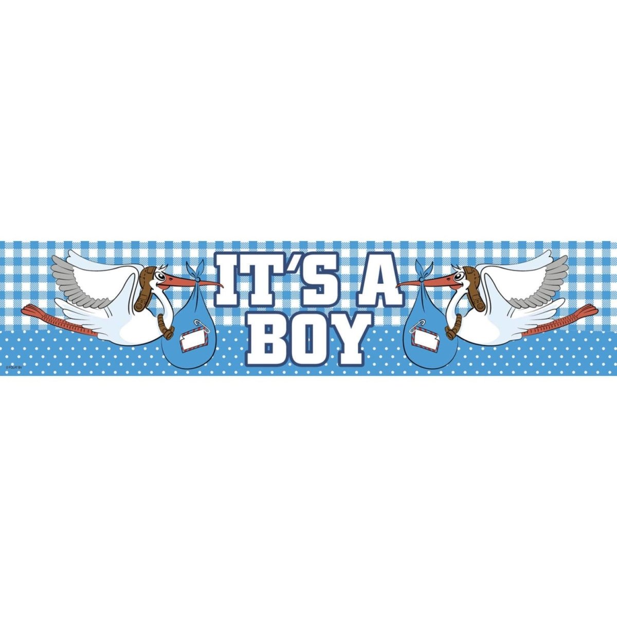 Geboorte Jongen Foliebanier - 2,5 mtr x 11cm. Inhoud: 1 banier. Kleur: Blauw. Bijvoorbeeld te gebruiken tijdens de volgende feestgelegenheid/feestgelegenheden: Themafeest, Geboorte Jongen. Afmetingen van dit artikel: 2,5 meter x 11 cm. Dit artikel is gemaakt van folie.