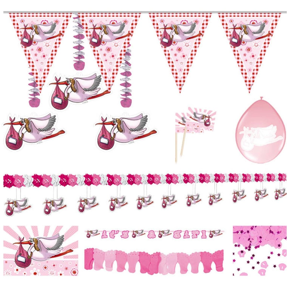 Feestpakket Geboorte Meisje. Inhoud: 8 ballonnen, 1 vlaggenlijn, 1 slinger met onderhangers, 1 raamvlag, 1 letterslinger, tafelconfetti, 3x hangdecoratie, 1 papieren slinger en 50 prikkers. Bijvoorbeeld te gebruiken tijdens de volgende feestgelegenheid/feestgelegenheden: Geboorte Meisje. De verpakking is 35 x 26 x 10 cm. Het artikel is gemaakt van karton.