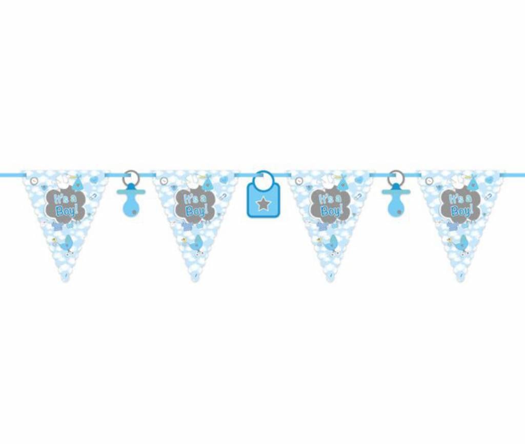 Vlaggenlijn It's a Boy - 6 meter. Inhoud: 1 vlaggenlijn. Kleur: Blauw. Bijvoorbeeld te gebruiken tijdens de volgende feestgelegenheid/feestgelegenheden: Geboorte Jongen. Deze slinger is 6 meter lang. De vlaggenlijn is gemaakt van papier.