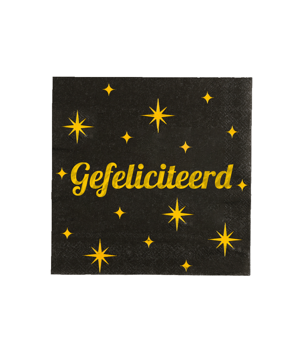 Gefeliciteerd Servetten Goud Zwart Sterren 19cm 16st