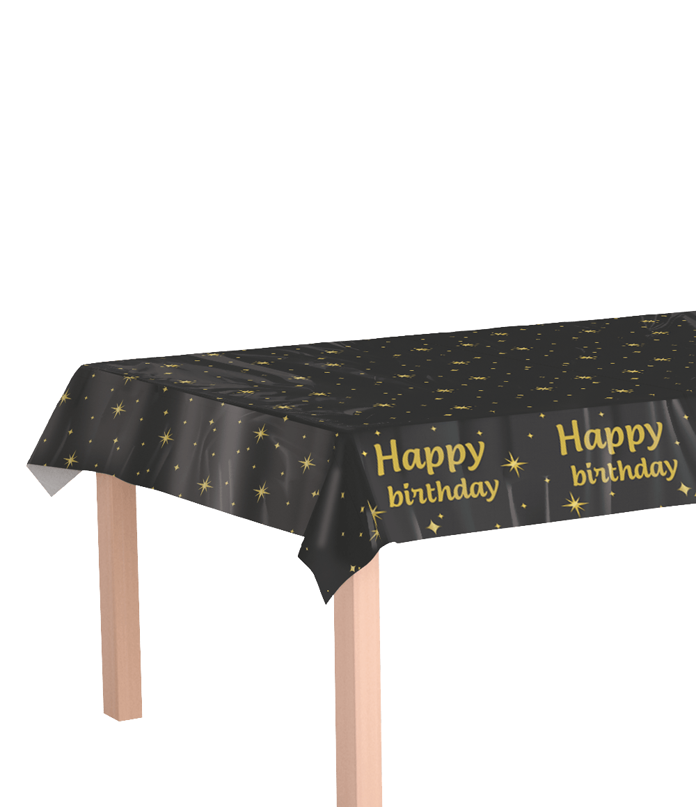 Gefeliciteerd Tafelkleed Zwart Goud 2,74m