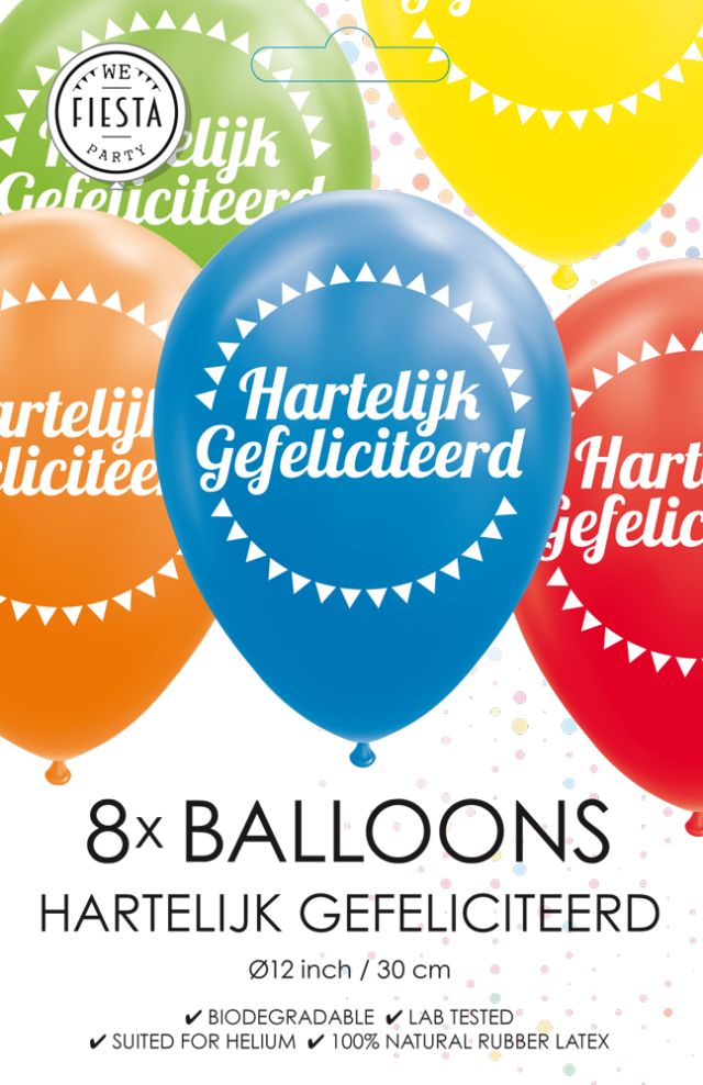 Gekleurde Ballonnen Hartelijk Gefeliciteerd 30,5cm 8st